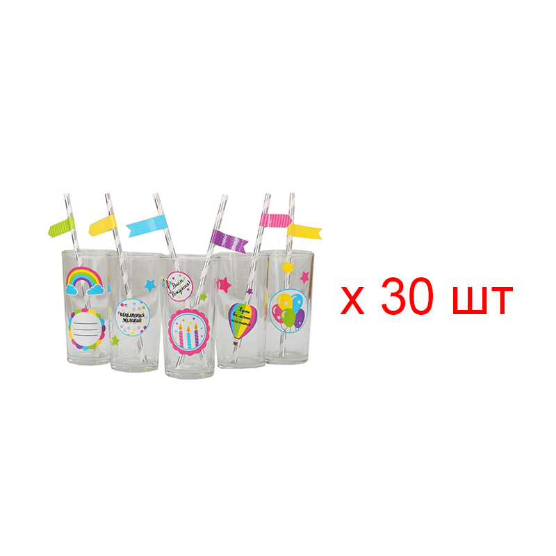 В набор входят трубочки для коктейля и наклейки. Общее количество трубочек: 30 штук.
