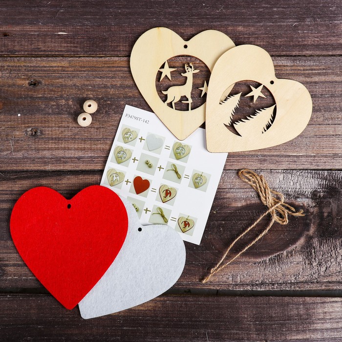 Набор для творчества - создай елочное украшение "Новогодние сердечки", набор 2 шт.