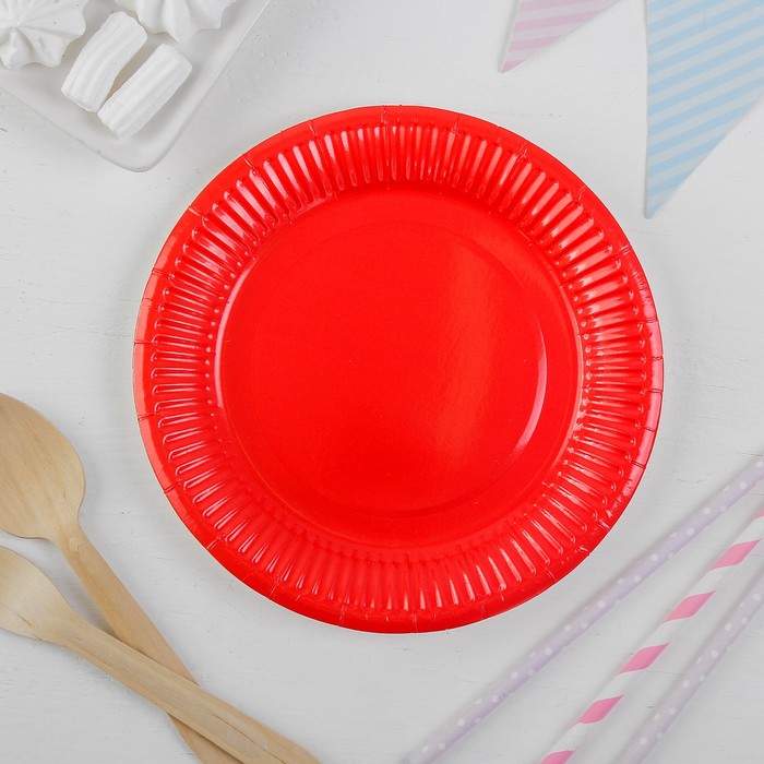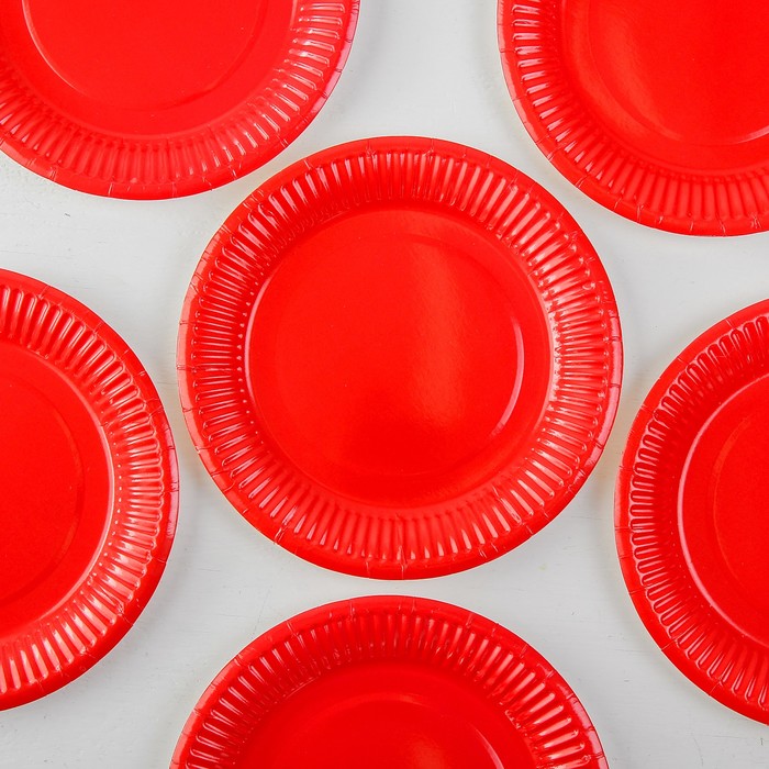 Набор одноразовой бумажной посуды, цвет красный, 18 тарелок и стаканов