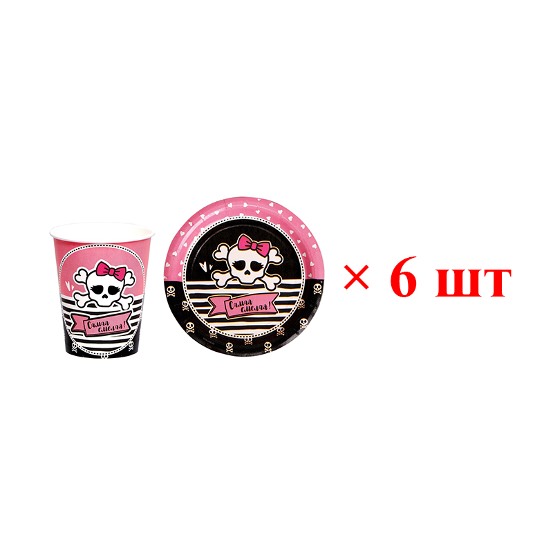 Набор одноразовой бумажной посуды "Самая смелая", 6 тарелок и стаканов