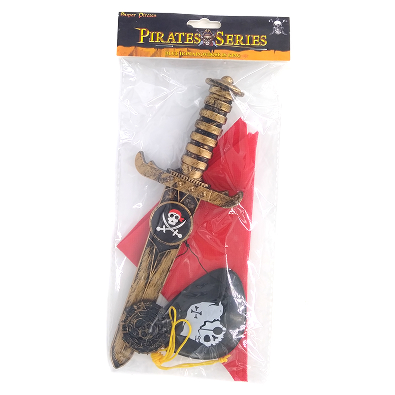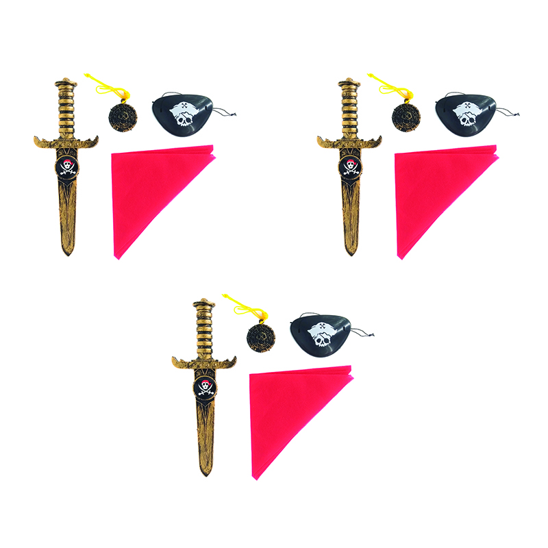 Набор пирата, 4 предмета: кинжал бронзовый, косынка на шею, наглазник, медальон (3 набора в комплекте)