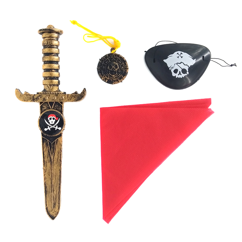 Набор пирата, 4 предмета: кинжал бронзовый, косынка на шею, наглазник, медальон (5 наборов в комплекте)