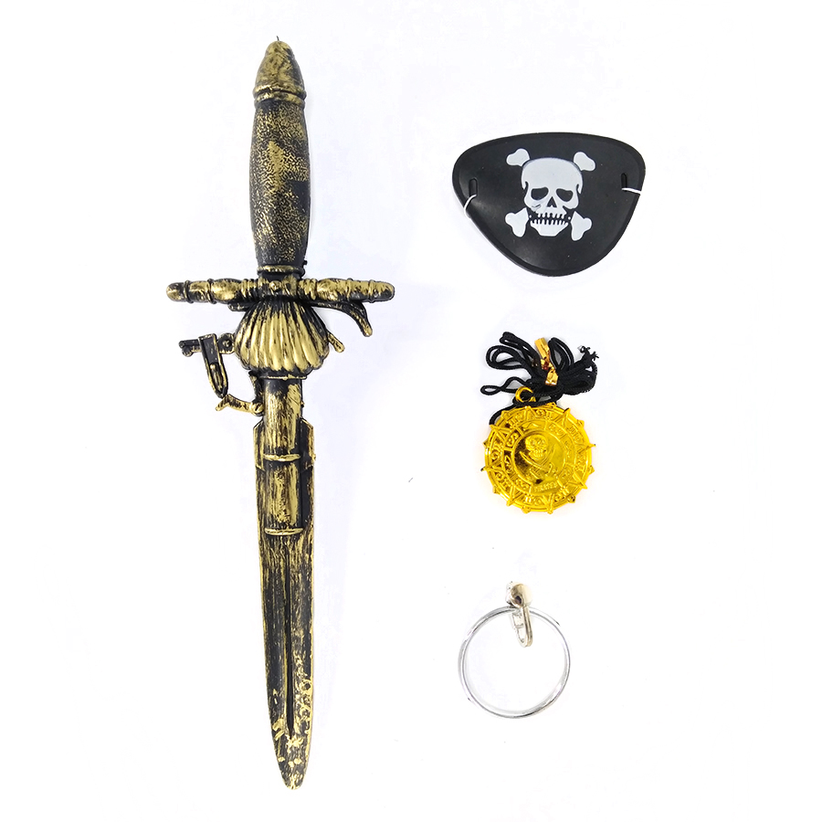 Набор пирата, карнавальный, детский, 4 предмета: кинжал, наглазник, клипса, медальон