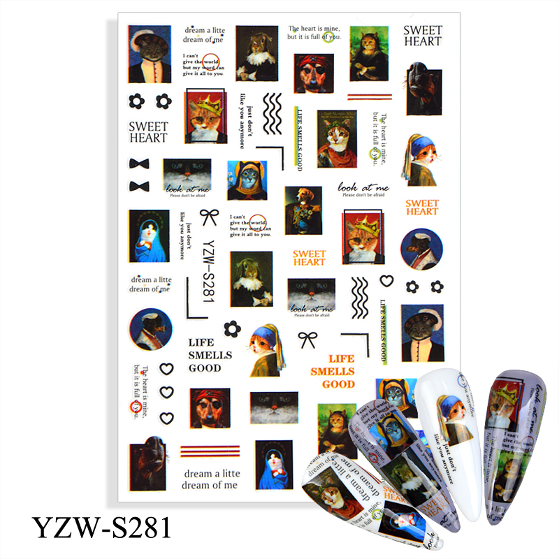 Наклейки для маникюра,слайдеры для ногтей "Кошки и живопись"