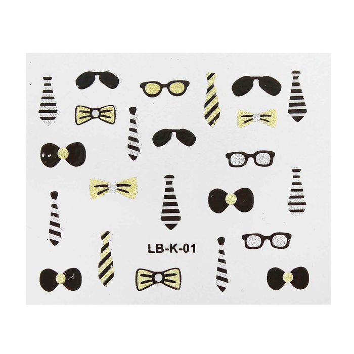 Наклейки для маникюра ,слайдеры для ногтей "Усы галстуки очки", цвет черно-золотой