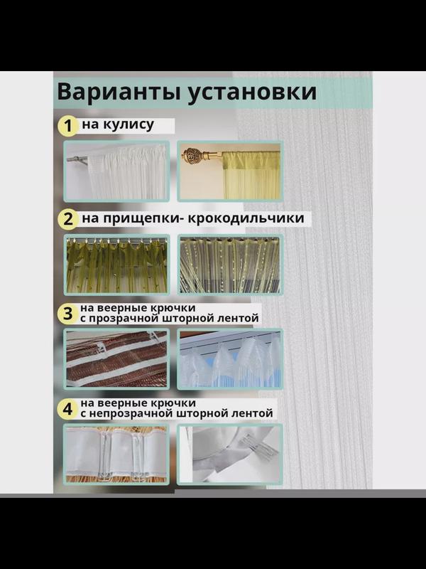 Занавеска нитяная декоративная, 300x300 см, цвет белый