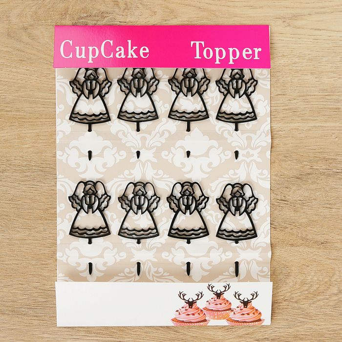 Набор топперов на пирожное "Ангел", 8 шт, цвет черный
