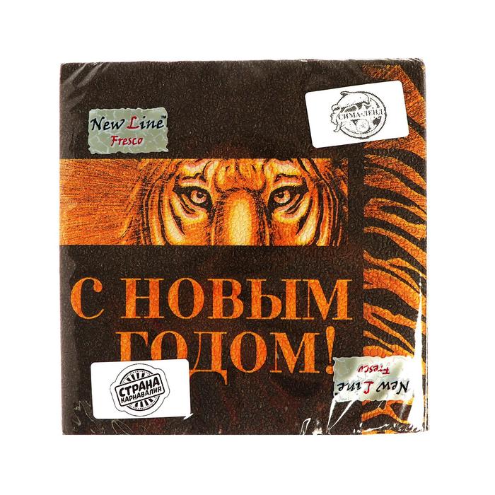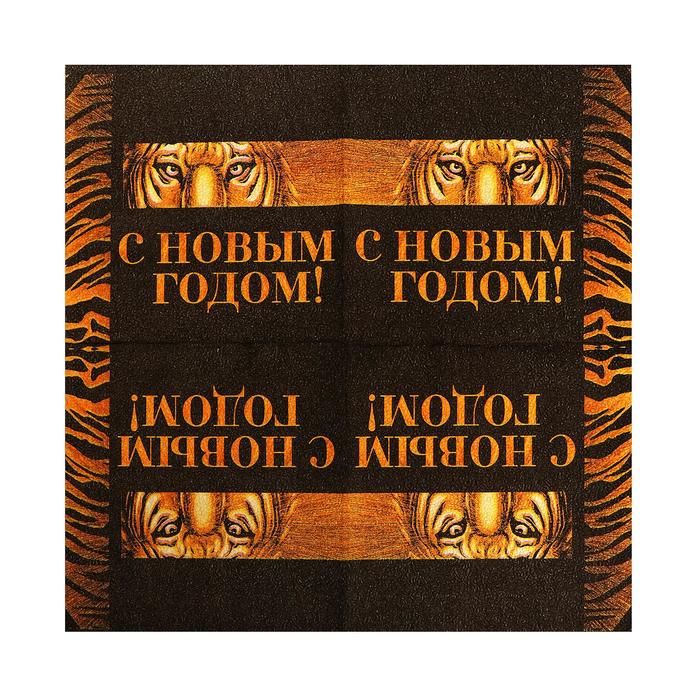 Салфетки бумажные "С Новым Годом" тигр, черное с золотым, 33 см, 20 шт.
