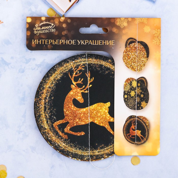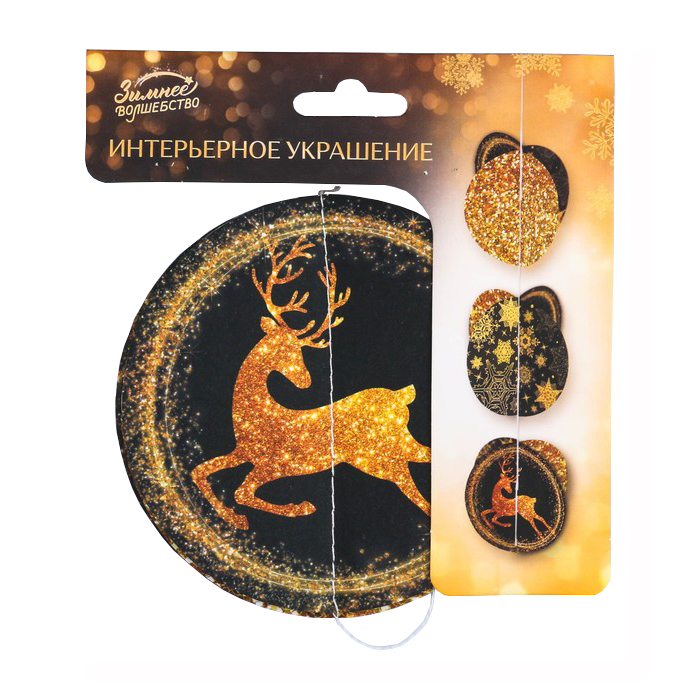 Вертикальная гирлянда на новый год "Богатства" черно золотая новогодняя олень