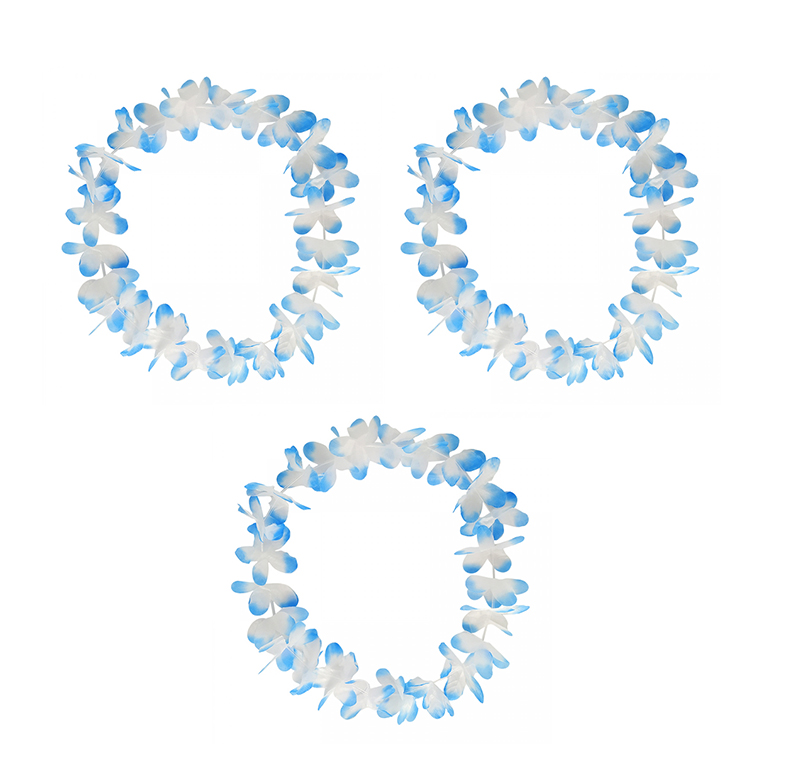 Ожерелье гавайское "Двухцветное", цвет бело-синий-голубой (Набор 3 шт.)