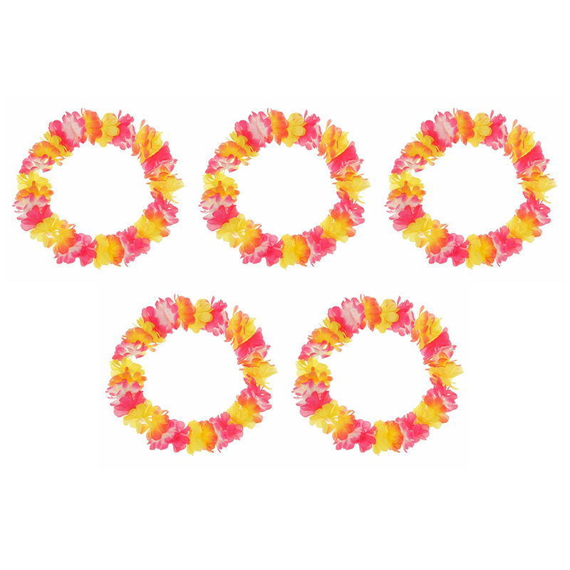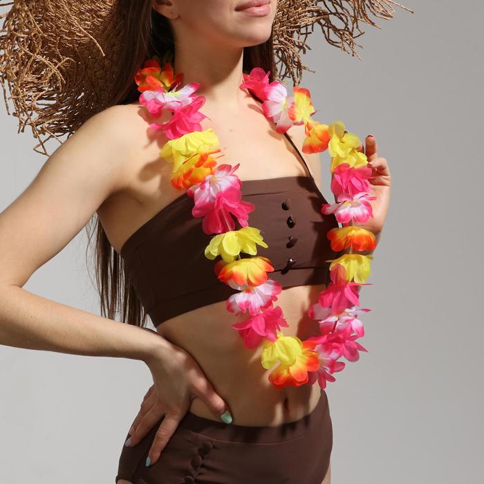 Ожерелье гавайское "Лепестки" (Набор 5 шт.), цвет розовый, желтый, оранжевый