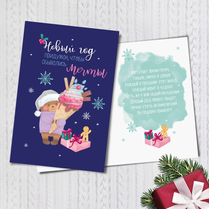 Открытка подарочная "Новый год и мечты", 12 х 18 см