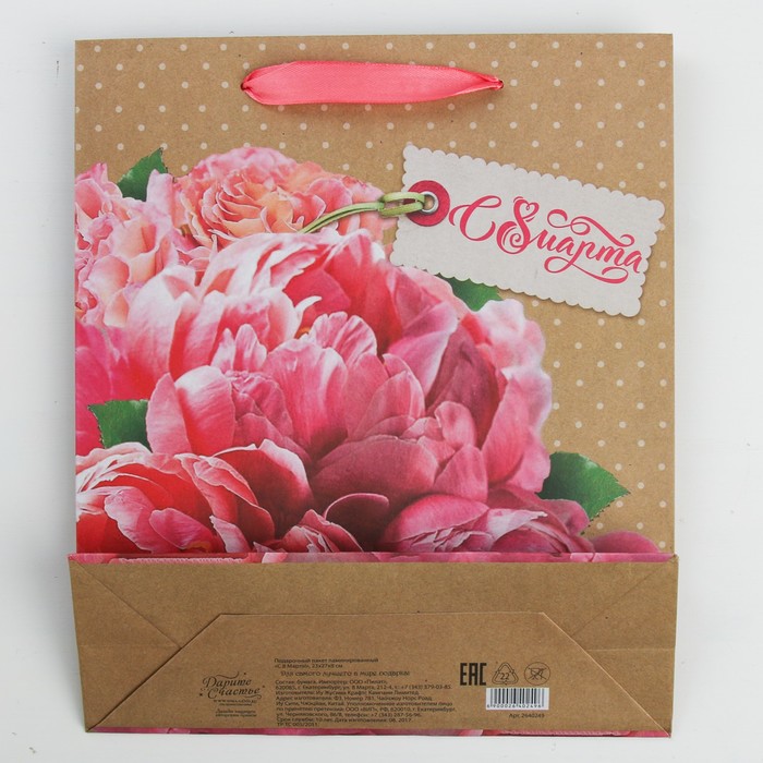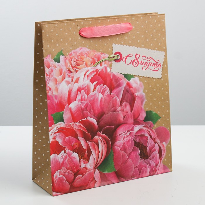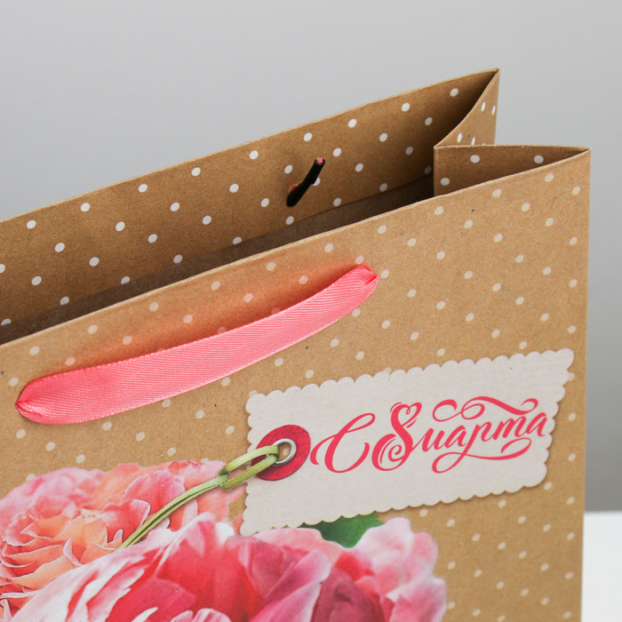 Пакет крафтовый вертикальный "С 8 Марта", 18х23х8 см