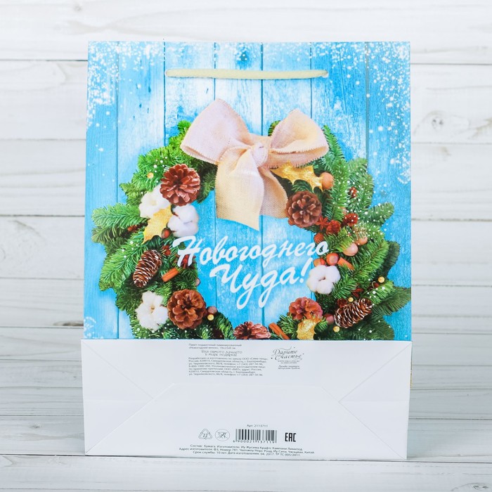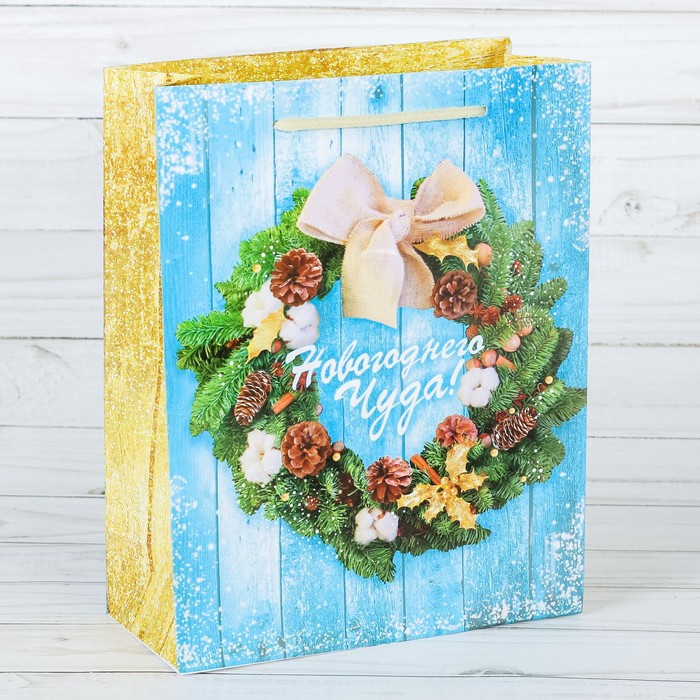 Пакет ламинированный вертикальный "Новогодний венок", 23х27х8 см