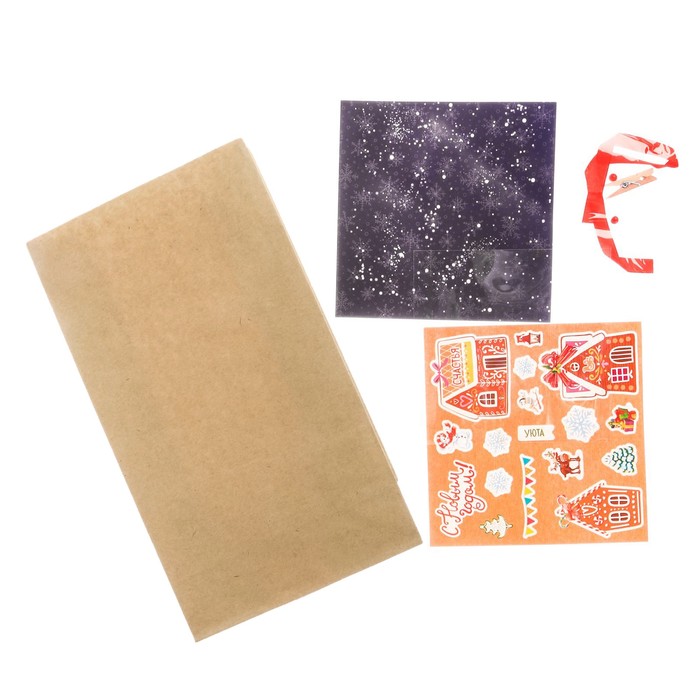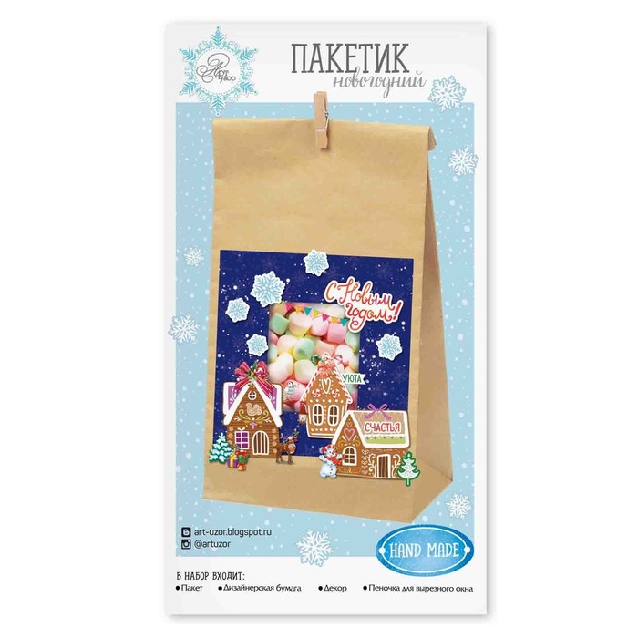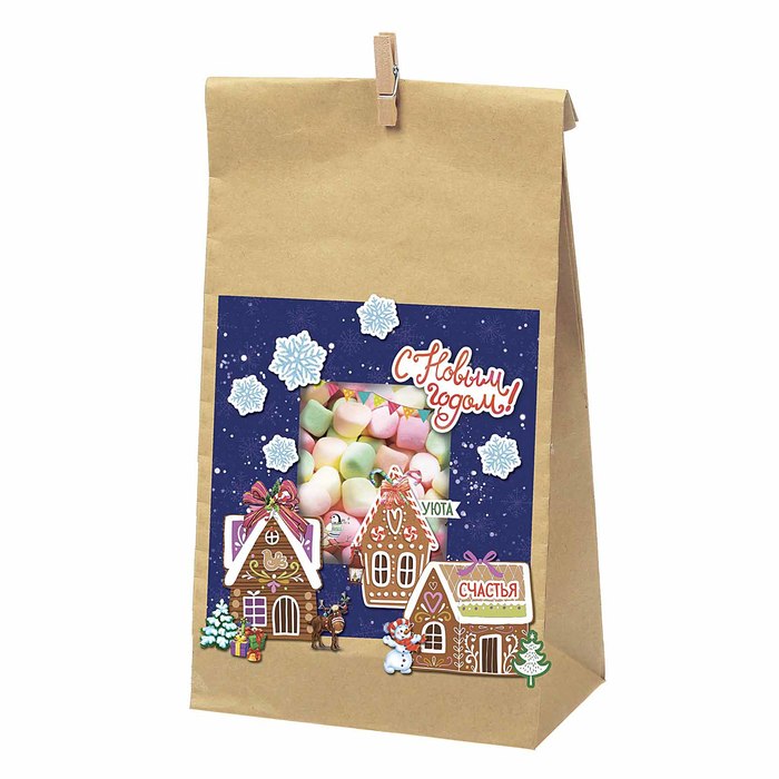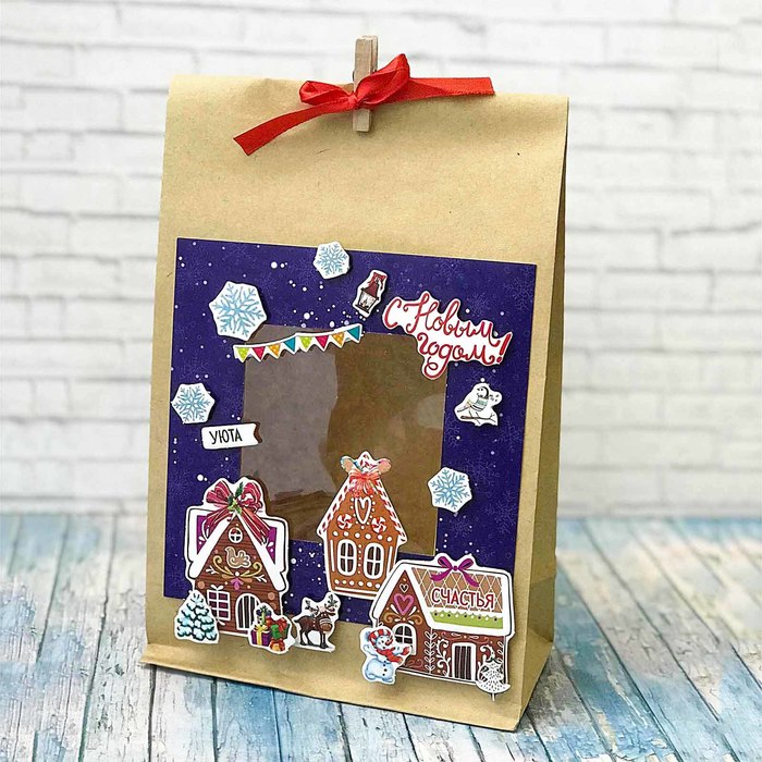 Пакет подарочный без ручек с декором "Имбирный праздник", 15х28 см
