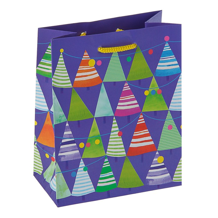 Пакет подарочный новогодний фиолетовый "Елочки-иголочки Новый год" елки, 11,4 х 11,4 см
