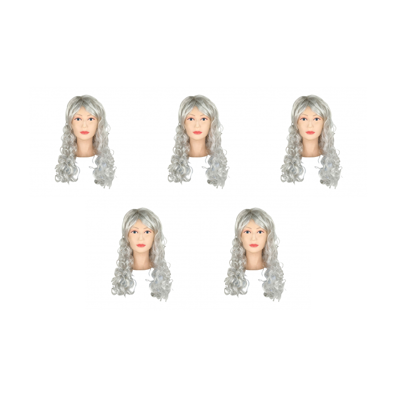 Парик карнавальный длинный кудрявый 60см цвет пепельный (Набор 5 шт.)