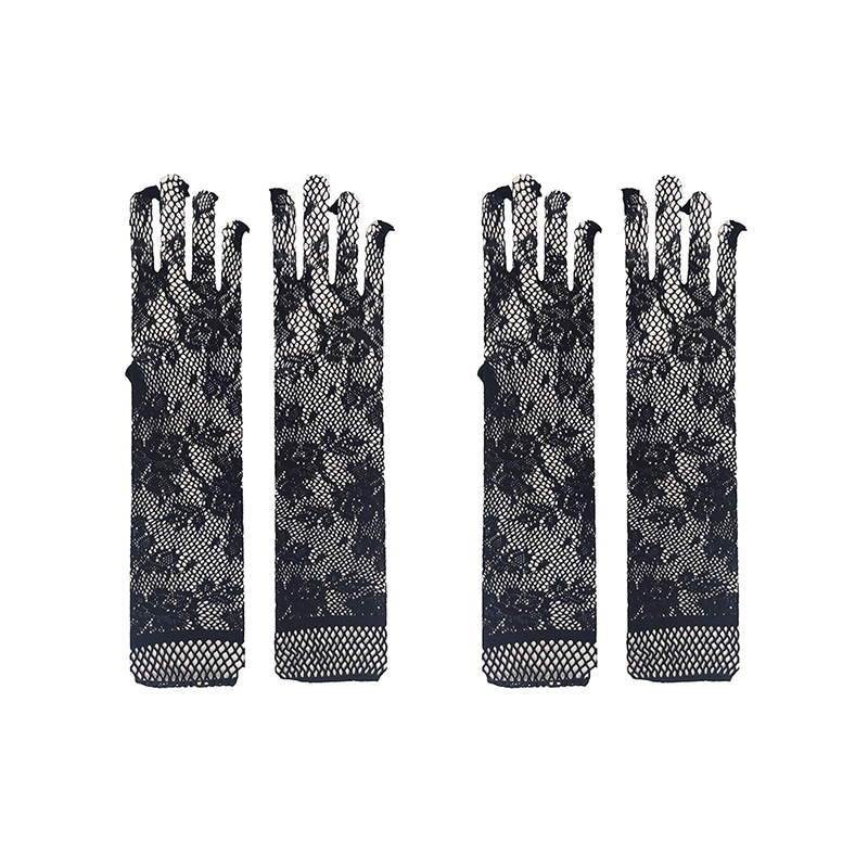 Перчатки женские взрослые кружевные "Гэтсби длинные ажурные" гипюр черные, 2 шт. (Набор 2 пары)