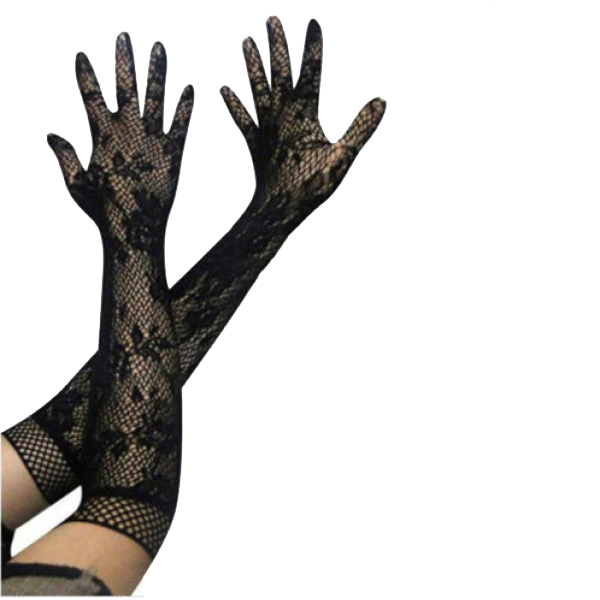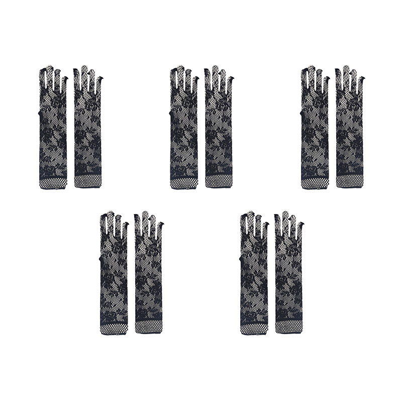 Перчатки женские взрослые кружевные "Гэтсби длинные ажурные" гипюр черные, 2 шт. (Набор 5 пар)