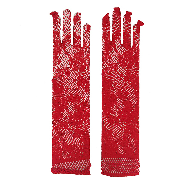 Перчатки женские взрослые кружевные "Гэтсби длинные ажурные" гипюр крансые, 2 шт. (Набор 2 пары)