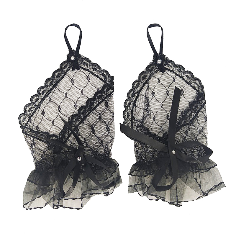 Перчатки женские взрослые кружевные "Гэтсби короткие ажурные" гипюр черные, 2 шт. (Набор 3 пары)