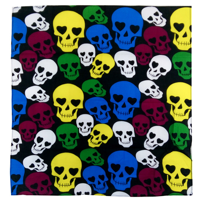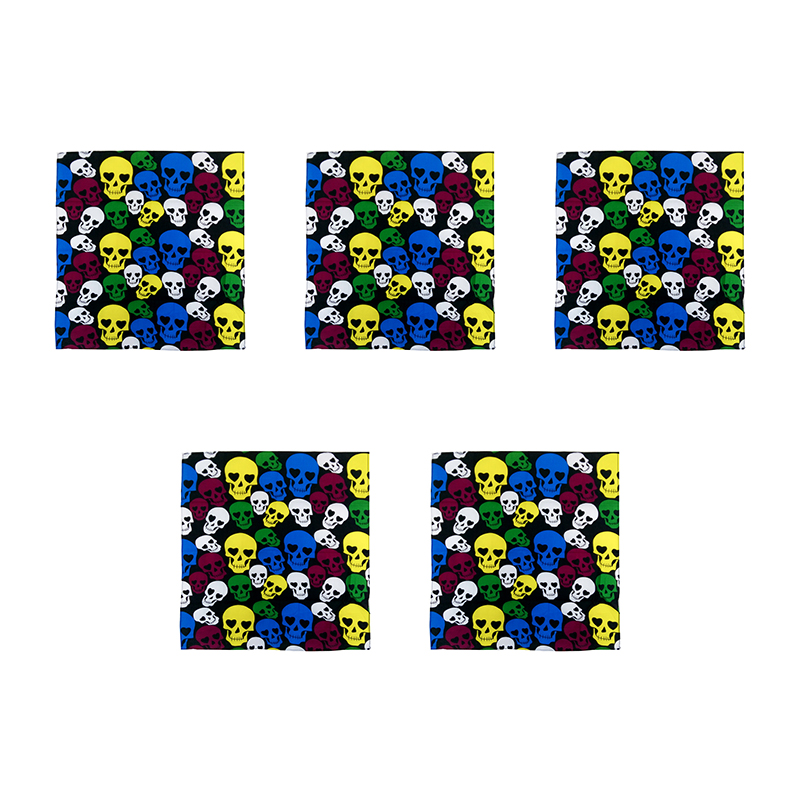 Платок бандана пиратская,байкера, рокера "Пират" Цветные черепа 55 х 55 см (Набор 5 шт.)