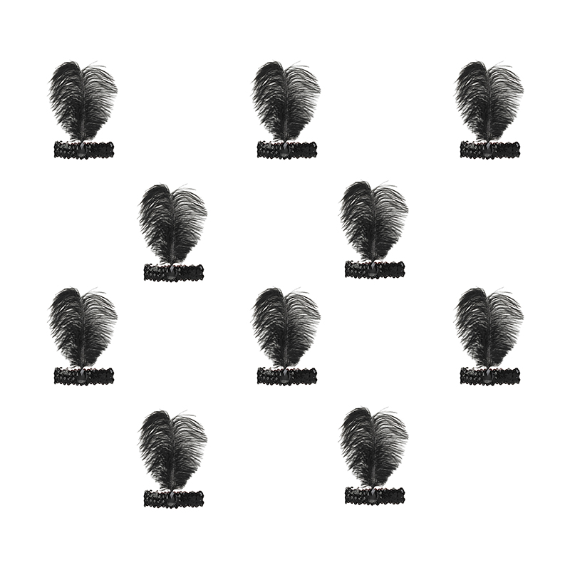 Повязка черная на голову с пером "Леди Чикаго", гангстерская вечеринка ободок карнавальный, кабаре гэтсби казино гангстеры (Набор 10 шт.)