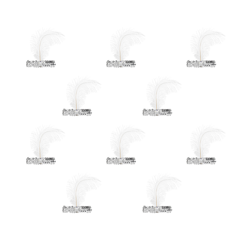 Повязка на голову с пером, цвет белый (Набор 10 шт.)