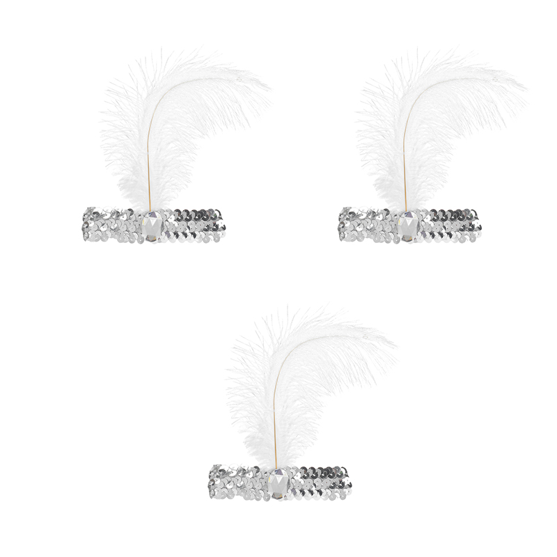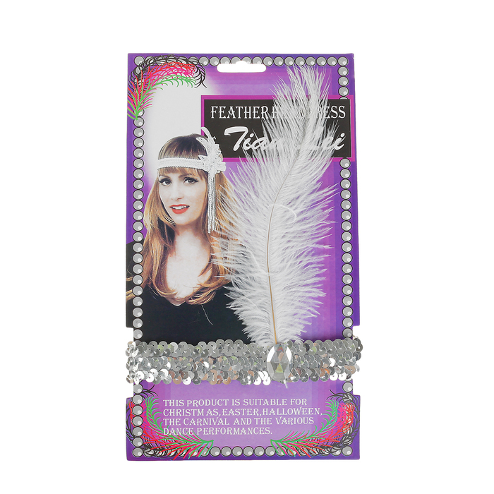 Повязка на голову с пером, цвет белый (Набор 3 шт.)