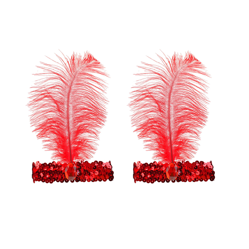 Повязка на голову с пером, цвет красный (Набор 2 шт.)