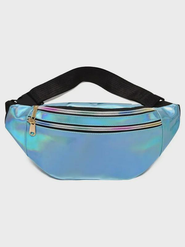 Сумка женская детская блестящая "Перламутр" на пояс, на плечо, цвет голубой