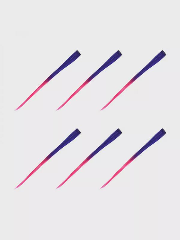 Прядь накладная на заколке 50 см, омбре из фиолетового в розовый (Набор 6 шт.)