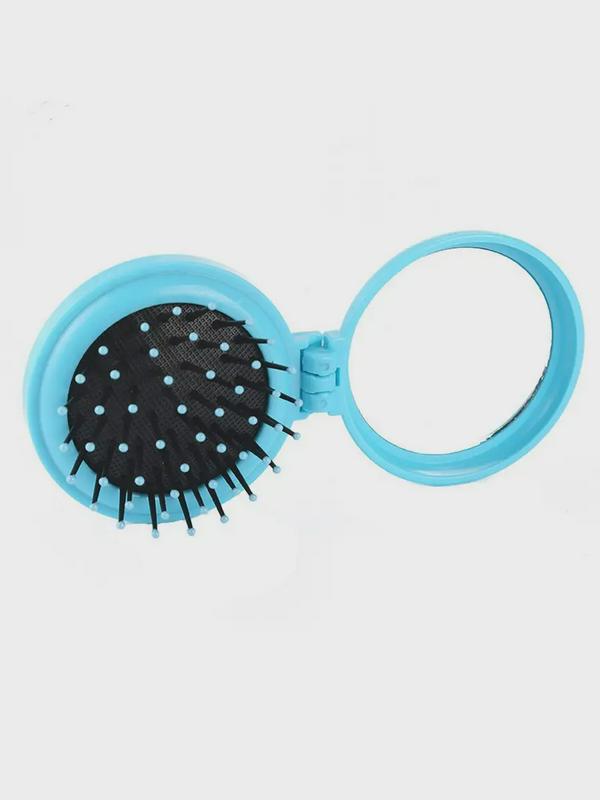 Расческа массажная круглая с зеркалом складная, цвет голубой