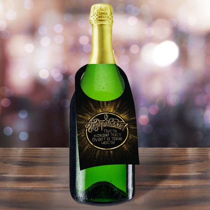 Шильдик на бутылку "Поздравляю", тост, 17х8 см