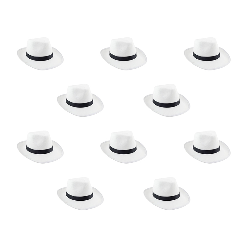 Шляпа гангстерская федора Белая "Гангстер мафиози" фетр (Набор 10 шт.)