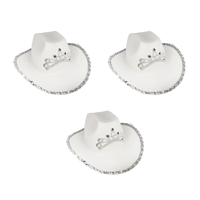 Шляпа ковбойская женская белая "Ковбой" (Набор 3 шт.)