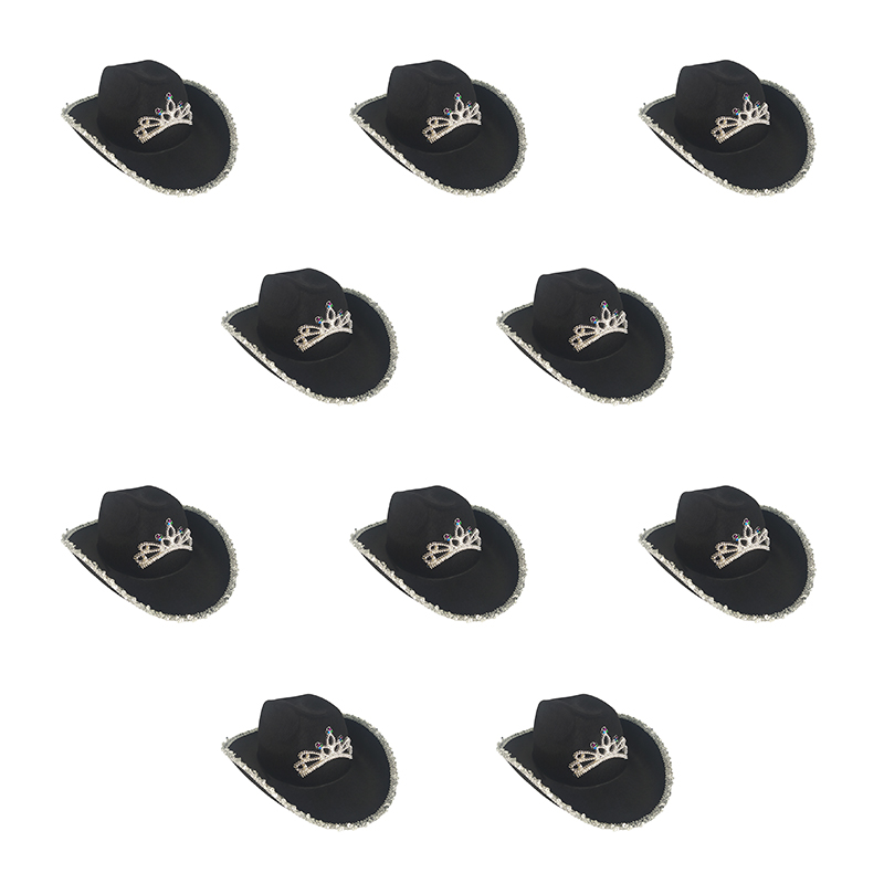 Шляпа ковбойская женская черная "Ковбой" (Набор 10 шт.)