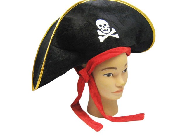 Шляпа пирата "Пиратская треуголка с красной лентой" детская (Набор 3 шт.)