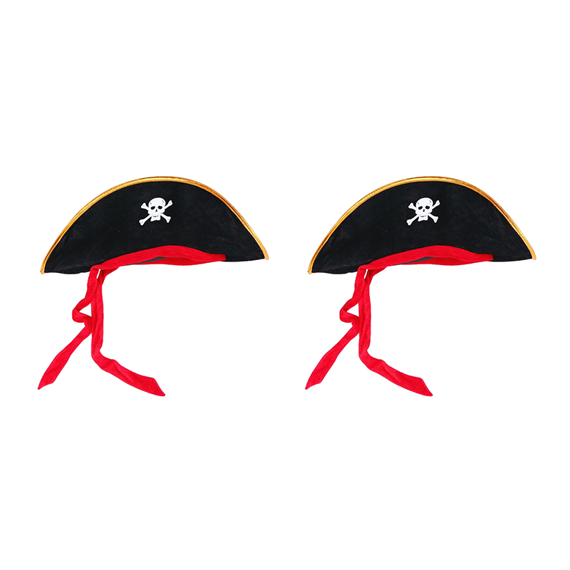 Шляпа пирата "Пиратская треуголка с красной лентой" с черепом (Набор 2 шт.)