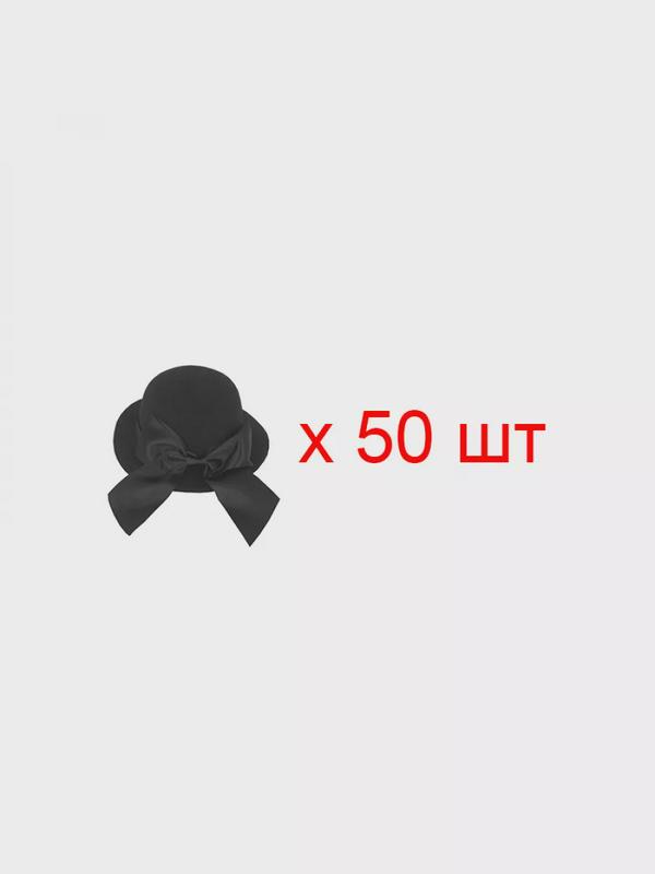 Шляпка цилиндр карнавальная с бантом на заколке, 13 см, цвет черный (Набор 50 шт.)