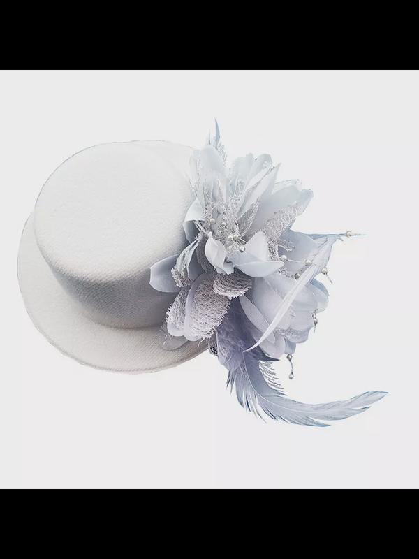 Шляпка на заколке карнавальная "Цветок с перьями", 13 см, цвет белый (Набор 3 шт.)