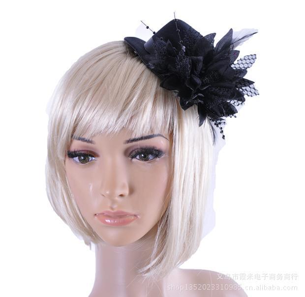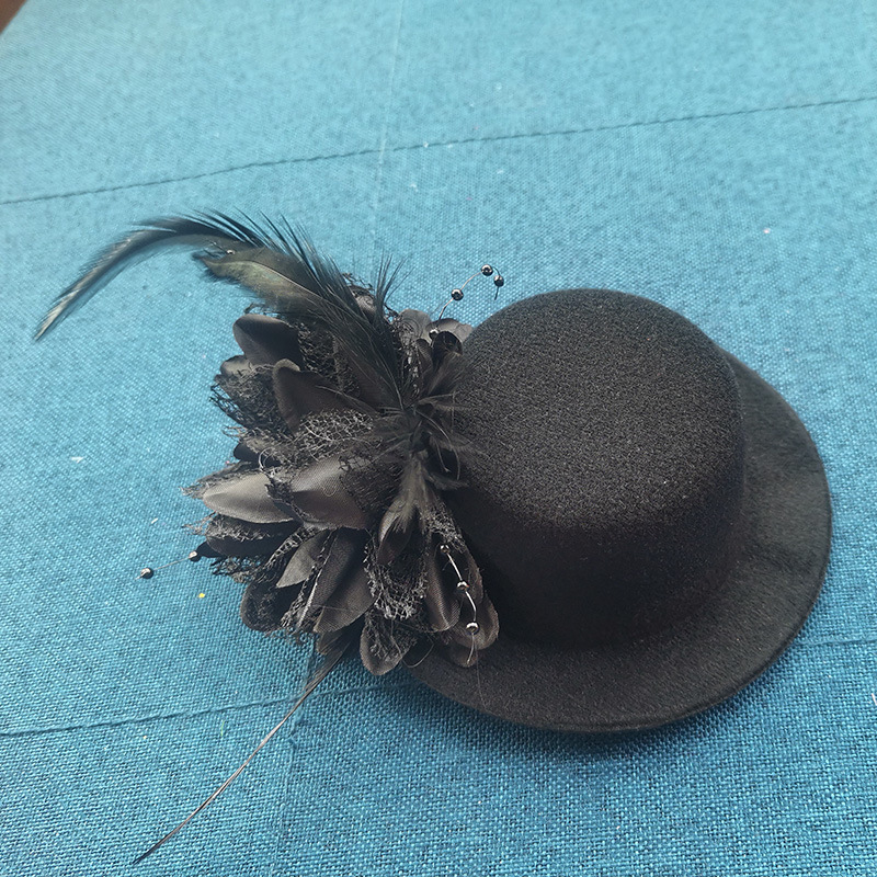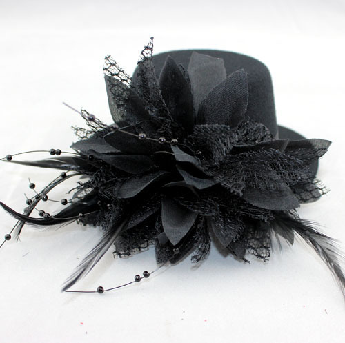 Шляпка на заколке карнавальная "Цветок с перьями", 13 см, цвет черный
