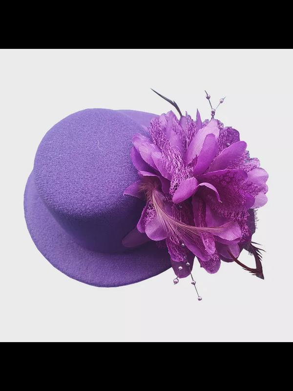 Шляпка на заколке карнавальная "Цветок с перьями", 13 см, цвет фиолетовый (Набор 3 шт.)