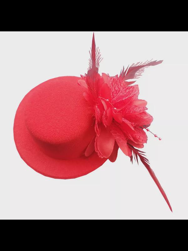 Шляпка на заколке карнавальная "Цветок с перьями", 13 см, цвет красный (Набор 2 шт.)