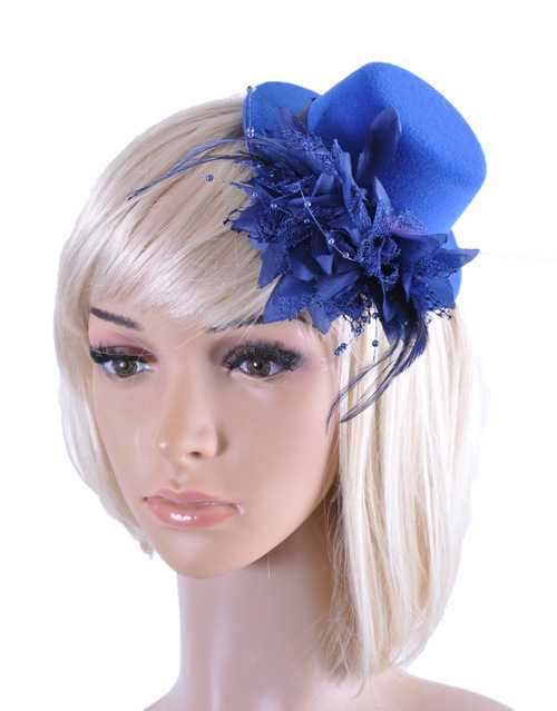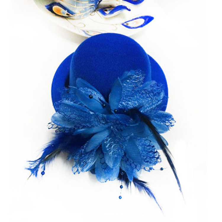 Шляпка на заколке карнавальная "Цветок с перьями", 13 см, цвет синий