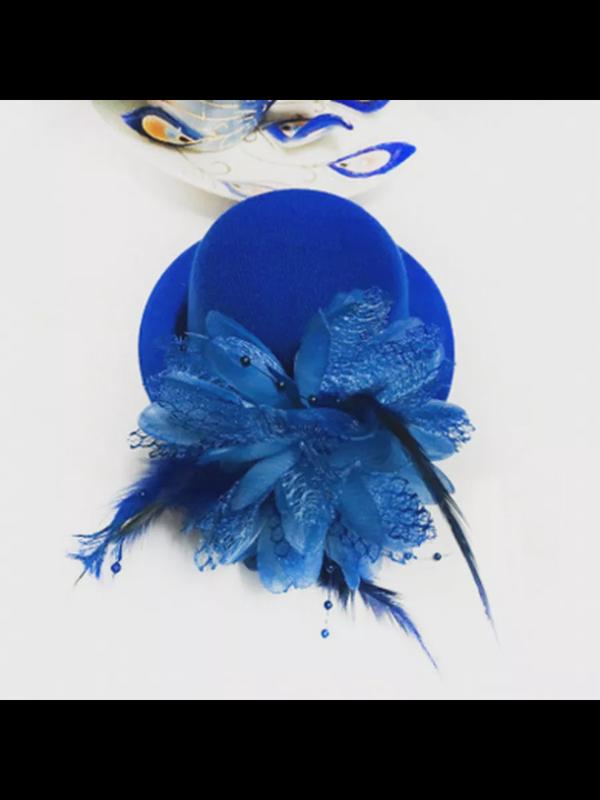 Шляпка на заколке карнавальная "Цветок с перьями", 13 см, цвет синий (Набор 2 шт.)