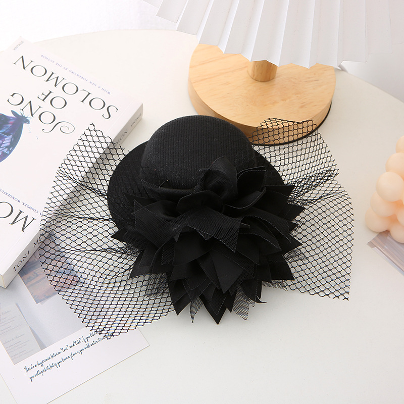 Шляпка вуалетка на заколке карнавальная с большим цветком, 13 см, цвет черный
