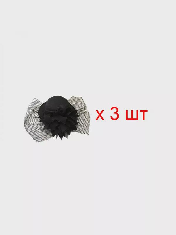Шляпка на заколке карнавальная с большим цветком, 13 см, цвет черный (Набор 3 шт.)