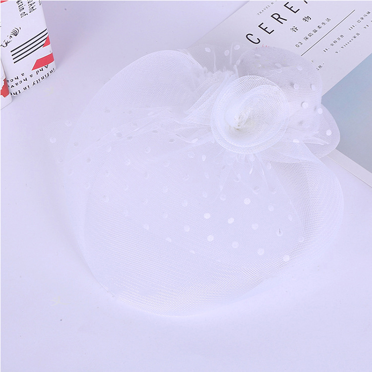 Шляпка вуалетка на заколке карнавальная с вуалью, 13см, цвет белый
