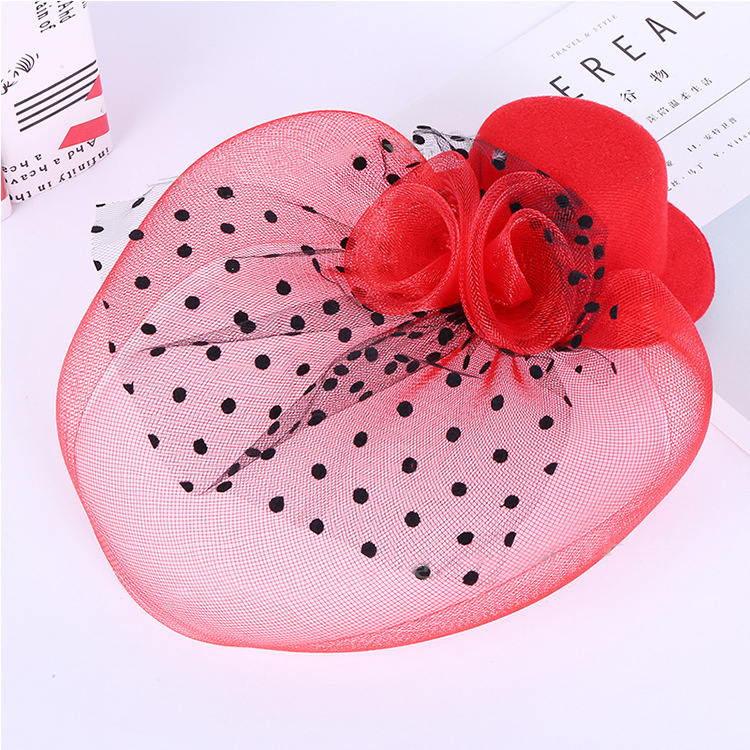 Шляпка вуалетка на заколке карнавальная с вуалью, 13см, цвет красный